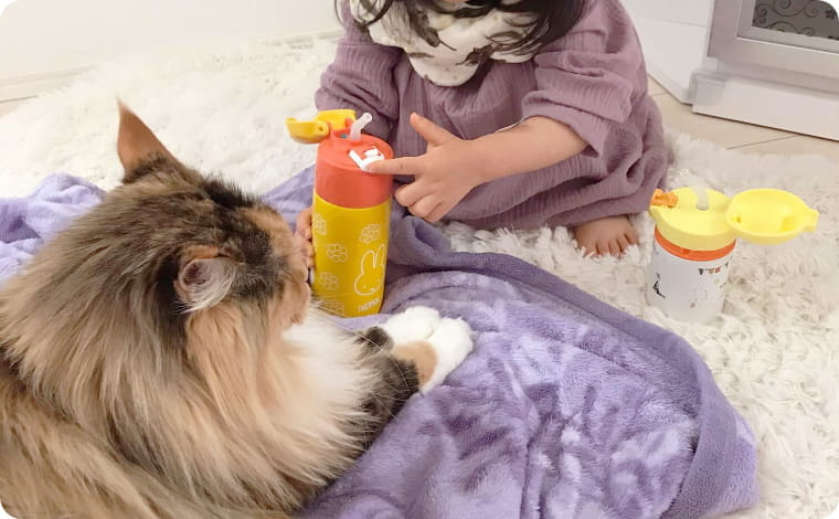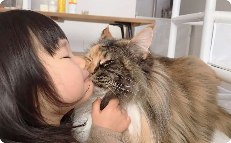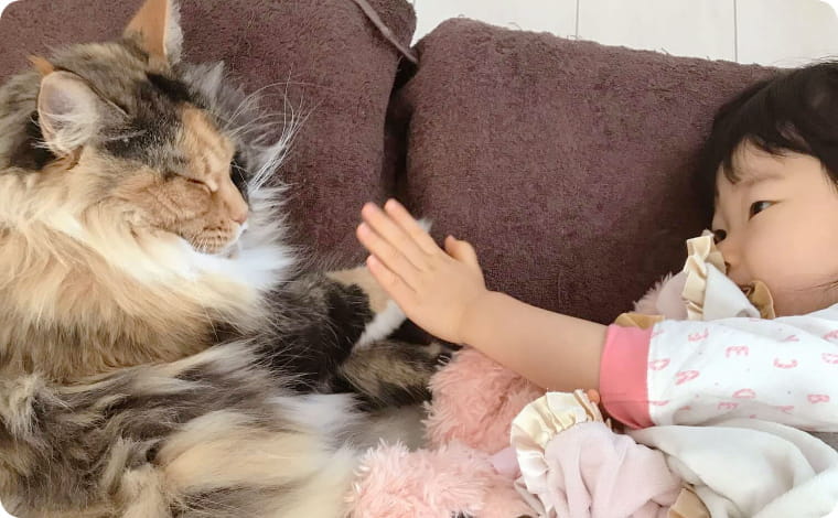 小さな子供と先住動物がいる我が家はゆずちゃんにとってしんどくないものか、お家の構造などスタッフさんにご相談し、メインクーンの特徴やゆずちゃんの性格をお聞きして応募しました。