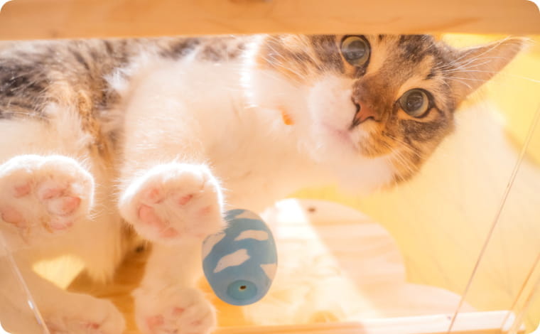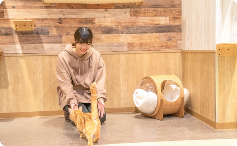 おもちゃで遊んだり、さまざまな性格の子達の様子をスタッフみんなでお世話しながら、お客様へご紹介することで、何度も通って会いに来てくれる方、運命の出会いとして「セカンドライフ」を応援してくれるお客様との出逢いを大切にし、新しい家族との素敵な生活を提案していきたいと思います。