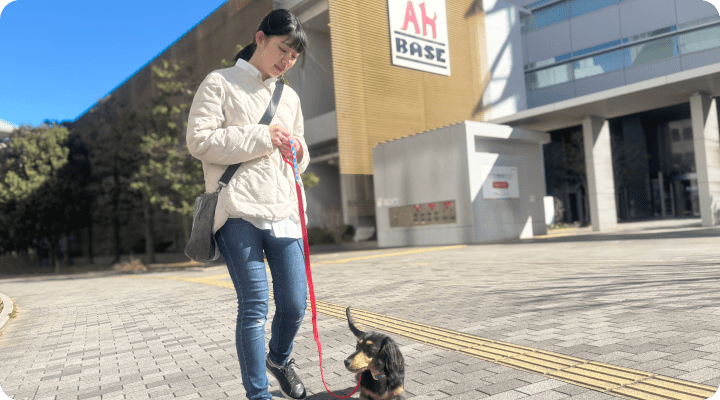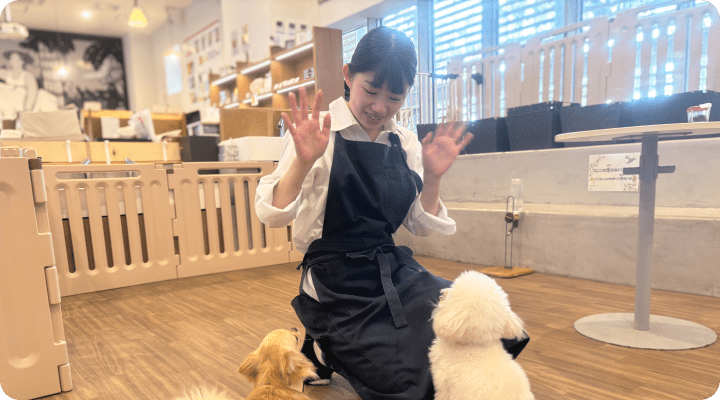 ペットプラスが展開している「AHBASE」や「いぬのようちえん」で、ワンちゃんのトレーニングを行うことが仕事です。
