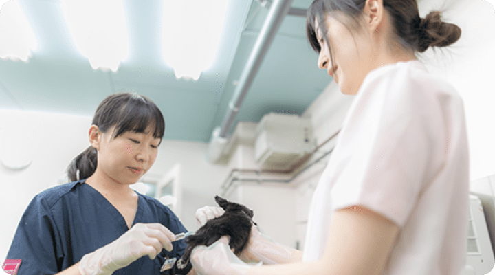 他にも、店舗を巡回してワクチン接種や治療を行ったり、お取引先様のご自宅に訪問し、親犬・親猫へのワクチン接種の実施、手術などを行うこともあります。