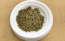 量ったドライフードをお皿に入れる