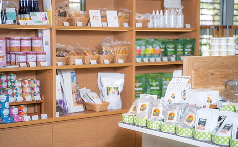 人間の赤ちゃんと同じように配慮して、ワンちゃんにもカラダに優しい安全な味わいを求め、成分やストーリー・オーガニックなどにこだわった商品だけを集め、取り揃えています。お買い求めいただいたらその場で食べられるので、ワンちゃんも大喜びです。