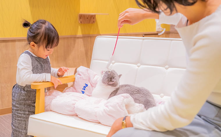 触れ合い、楽しんだ上で、ネコちゃんを家族に迎えることもできるネコライフ体験ショップです。