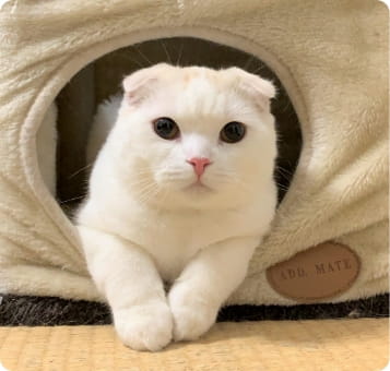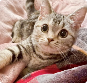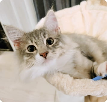 甘えん坊で好奇心旺盛の無邪気ないたずらっこ。温厚でワンちゃんなど他のペットに対してもフレンドリーです。